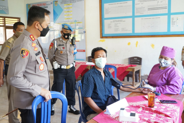 Dalam pantauannya di gerai vaksinasi Balai Desa Juron, Kecamatan Nguter, Kapolres mengingatkan agar setelah mendapatkan vaksin masyarakat diminta untuk tetap mematuhi protokol kesehatan. Hal tersebut sebagai upaya memutus penyebaran Covid-19.