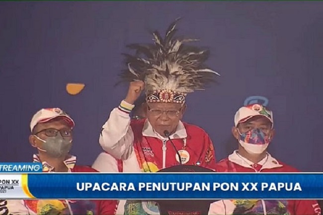 “Terima kasih dan penghargaan tinggi secara khusus saya sampaikan kepada Gubernur Papua, Bapak Lukas Enembe, selaku Ketua Panitia Nasional PON XX Tahun 2021 atas keberhasilannya menyelenggarakan PON XX dengan baik, aman, dan penuh prestasi,” imbuhnya.