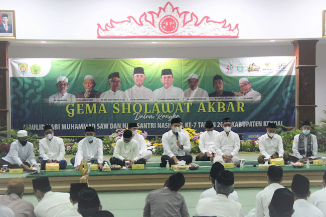 Kendal, Gatra.com - Gema Sholawat Akbar digelar Pemerintah Kabupaten (Pemkab) Kendal Jawa Tengah dalam memperingati Maulid Nabi Muhammad SAW dan Hari Santri Nasional (HSN) tahun 2021. Dalam kegiatan yang digelar secara virtual tersebut dihadiri sejumlah kiai sepuh pengasuh pondok pesantren (Ponpes) di Kendal.