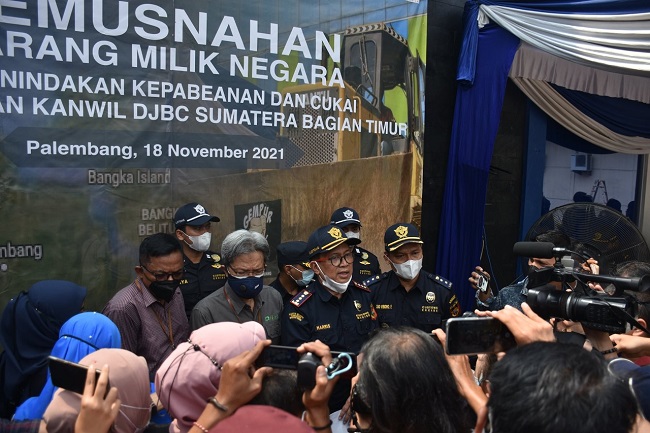 Kantor Wilayah Bea Cukai Sumatera Bagian Timur dan jajaran kantor pengawasan di bawahnya melaporkan lebih dari Rp17,7 miliar total nilai barang yang dimusnahkan secara serentak. Pemusnahan dilakukan secara serentak, di 3 Provinsi melalui daring dan luring bersama dengan Bea Cukai Palembang, Bea Cukai Jambi, Bea Cukai Pangkalpinang dan Bea Cukai Tanjungpandan.