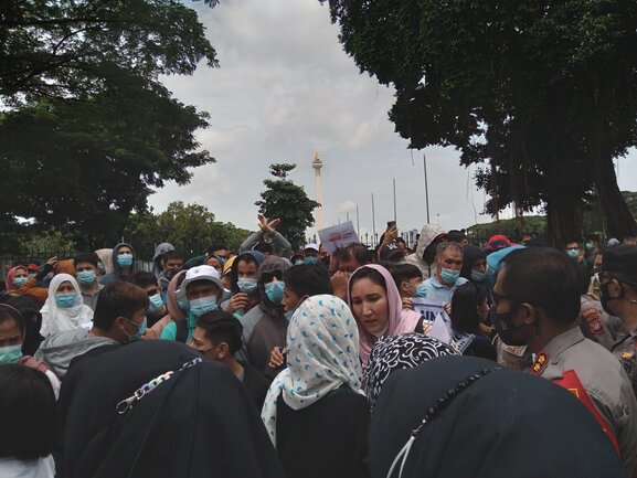 Jakarta, Gatra.com – Ratusan pengungsi Afghanistan dan etnis Hazara menyambangi kantor Amnesty International Indonesia di Menteng untuk memohon bantuan kemanusiaan. Sebelum menuju kantor tersebut mereka melakukan aksi damai di Taman Monas, Jakarta Pusat.