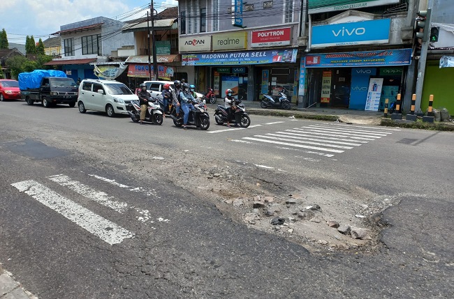 "Jalan berlubang mulai dari lampu merah Ngasem sampai arah lampu merah Kleco," katanya.