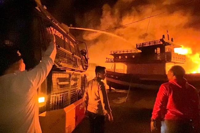 “Angin besar dan posisi kapal saling berdekatan sehingga kobaran api dengan cepat menyambar kapal-kapal yang lain,” ujarnya.