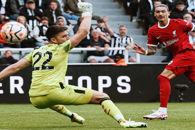 Nunez akhirnya menjadi petaka bagi Newcastle. Dia kembali mencetak gol di menit 90+3, sekaligus memastikan kemenangan bagi Liverpool.