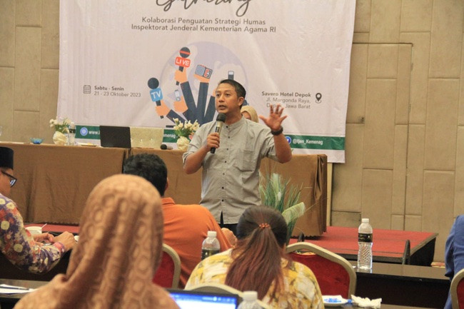 Depok, Gatra.com – Inspektorat Jenderal Kementerian Agama menggelar acara Media Gathering dengan mengusung tema Kolaborasi Penguatan Strategi Komunikasi Humas yang diselenggarakan selama tiga hari pada 21 hingga 23 Oktober 2023. Acara ]ini dilakukan guna mengoptimalisasikan program pengawasan, reformasi birokrasi, dan program early warning system, serta humas berbicara. Humas sebagai obyek utama dalam penyebaran informasi perlu melakukan perencanaan yang terorganisir agar tercapai tujuannya dalam menyebarkan informasi.