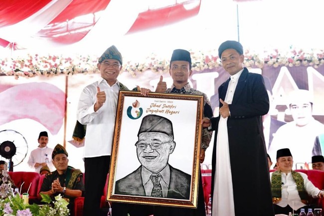 "Pesan saya kepada para santri, rajin-rajinlah belajar dan jangan kenal lelah, karena santri memiliki keunggulan dari sisi pengetahuan, agama, dan akhlak. Ketiga hal itu, yang membawa Indonesia menjadi maju di masa yang akan datang," tuturnya.