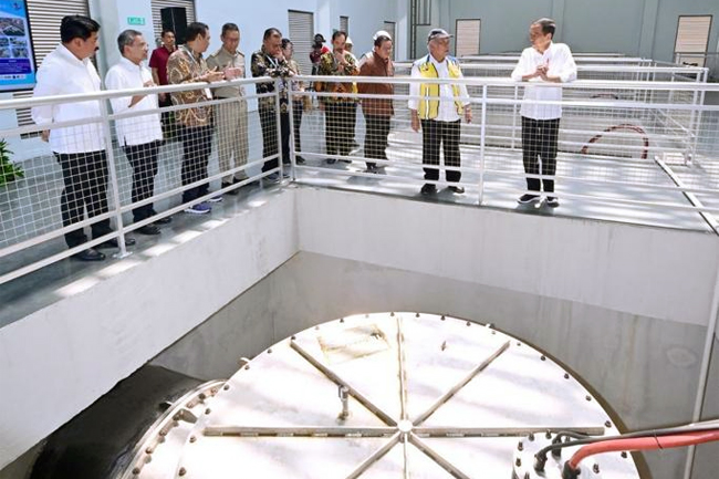 Jakarta, Gatra.com- Presiden Jokowi meresmikan Stasiun Pompa Ancol Sentiong, Jakarta Utara, 11/12. Menurut Jokowi ini merupakan langkah berkesinambungan pemerintah dari hulu hingga hilir untuk mengurangi banjir di wilayah Jakarta.