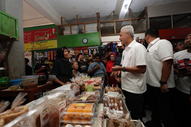 "Pak Ganjar sini pak. Ini beli jamu di tempat saya pak. Biar bapak tambah ganteng, awet muda saya ada jamunya pak," teriak para pedagang.