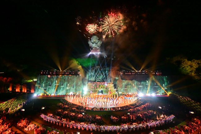 Presiden Jokowi tiba di Taman Budaya GWK pada pukul 18.53 WITA, didampingi oleh Menteri Pekerjaan Umum dan Perumahan Rakyat Basuki Hadimuljono, Menteri Pariwisata dan Ekonomi Kreatif/Kepala Badan Ekonomi Kreatif Sandiaga Salahudin Uno, serta Penjabat Gubernur Bali Sang Made Mahendra Jaya.