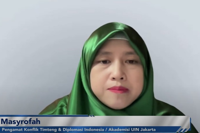 Lebih jauh Masyrofah mengamini, Indonesia dapat memainkan peran penting dengan menggunakan pengaruh diplomatiknya untuk mendorong dialog dan perundingan damai antara pihak-pihak yang berkonflik.
