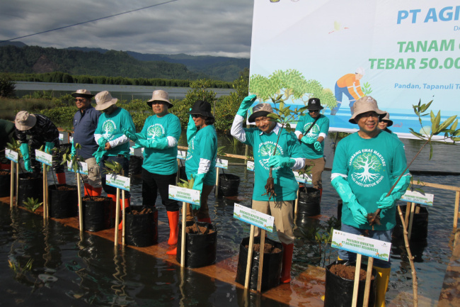 Tapanuli Tengah, Gatra.com – PT Agincourt Resources untuk kedua kalinya menggelar Aksi Tanam Mangrove “Dari Hati Untuk Bumi”. Kali ini, pengelola Tambang Emas Martabe itu menanam 60.000 bibit Mangrove serta menebar 50.000 bibit kerang dan kepiting di atas lahan seluas 19 hektare di Kelurahan Kalangan dan Desa Sitio-tio Hilir, Kecamatan Pandan, Tapanuli Tengah, Sumatra Utara (Sumut).