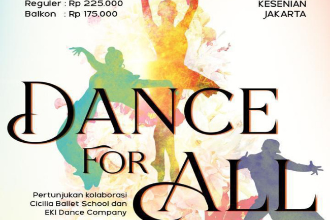 Jakarta, Gatra.com – Cicilia Ballet School dan EKI Dance Company akan mempersembahkan “Dance For All“. Pentas tari satu malam ini akan dihelat pada Minggu, 21 Juli 2024.
