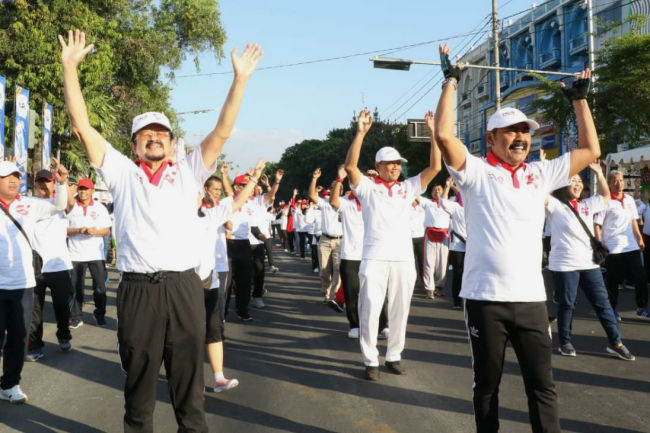 Jokowi-Prabowo Bertemu, Warga Solo Senam Massal di HUT CFD