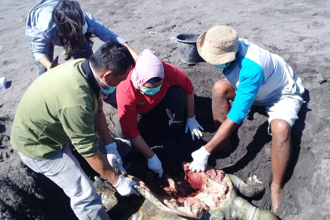 Lelah Bertelur, Penyu Raksasa Mati di Pantai Samas Bantul